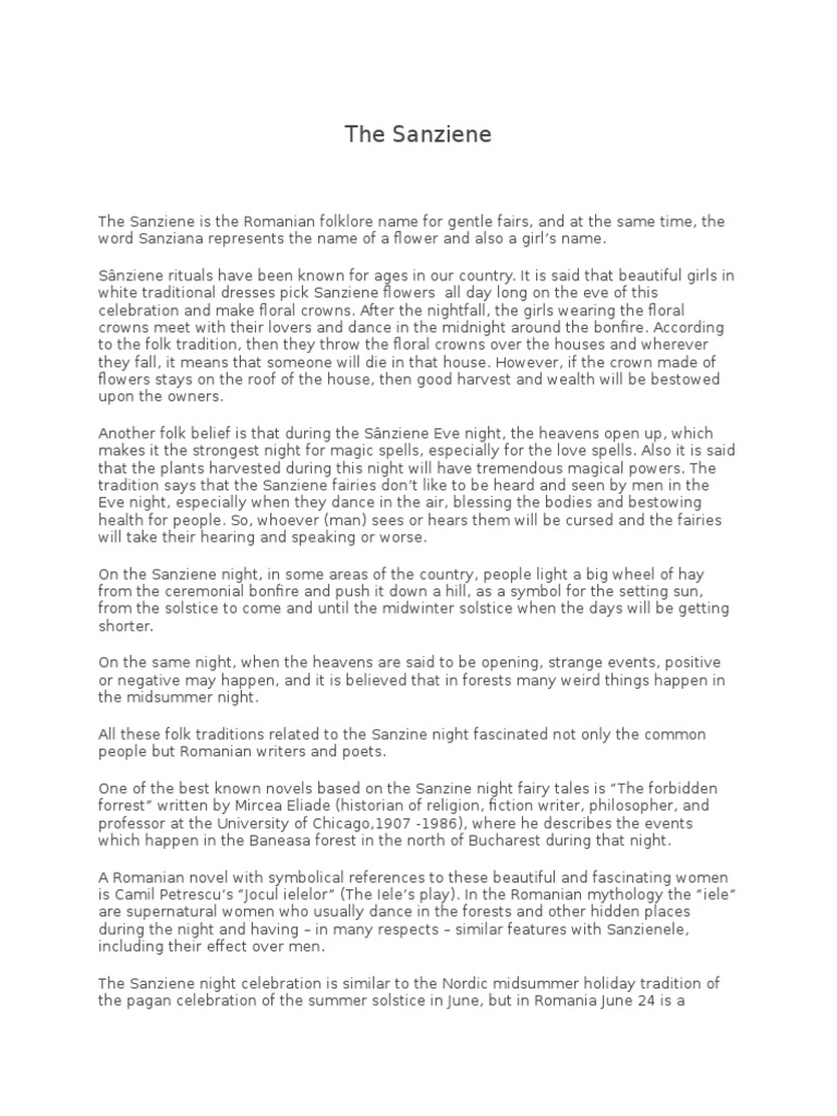 Sanziene Romania : Amazing Sanziene Night Ceremony In Romania Photos - Se supara si pedepsesc daca nu le.. Midsummer day has a twofold meaning in romania. Forêt interdite) is a 1955 novel by the romanian writer mircea eliade.the story takes place between 1936 and 1948 in bucharest and several other european cities, and follows a romanian man who is on a spiritual quest while being torn between two women. This is similar to the swedish midsummer holiday, and is believed to be a pagan celebration of the summer solstice in june. This is way, on sanziene's eve, people still use to make huge campfires on top of the hills and to dance around it. Romania celebrates the sanziene (also known as dragaica) every year on june 24, a tradition that coincides with the orthodox holiday of the birth of sf.